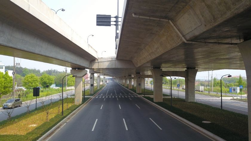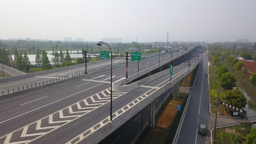 该项目合同价17900万元,工程地点义乌市义乌江大桥至苏溪镇高岭村,工程内容主要为高架桥梁工程、地面道路改造工程、排水工程、给水工程等。起止桩号:K3+117.5--K4+395,经过横向道路由南向北依次有:规划支路二,金大道,规划支路三,地面道路改造全长约1.278km,为双向8车道,标准段宽为70m,。高架桥起止桩号为 K3+117.5~K4+395,全长约1,278km,阳光大道建设规模高架路为双向6车道,标准段为 26m,最大单孔跨径为 65m,设计时速为80公里/小时;平行道宽度7,5m,为单向车道。